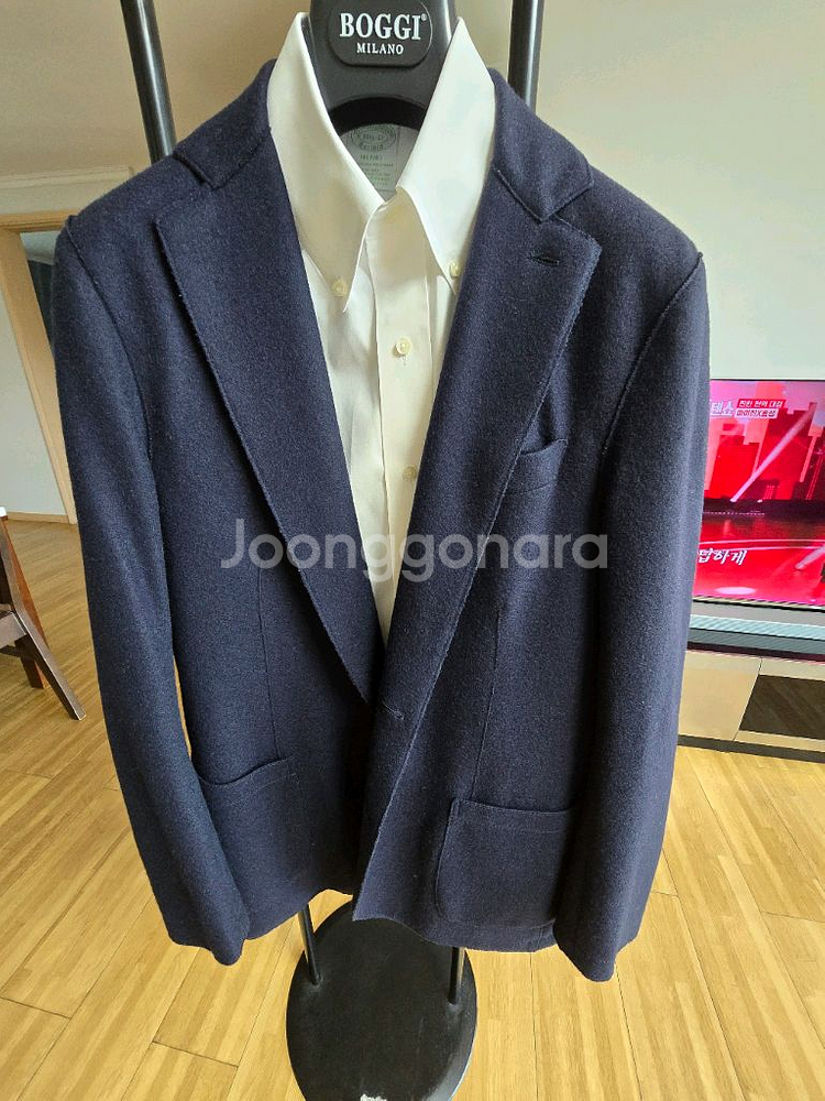 고급스러운 네이비 컬러의 캐시미어 블레이저예요. 클래식한 디자인과 고급스러운 소재감이 돋보이는 제품입니다. 상태 양호하고 착용감도 좋아요!