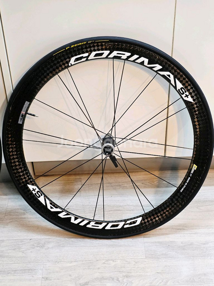 프랑스 명품 브랜드 코리마사의 카본 휠셋입니다 국내 수입 정품입니다. S47 모델이고 튜블러입니다. 휠변형 및 특별한 하자 없이 깨끗합니다.