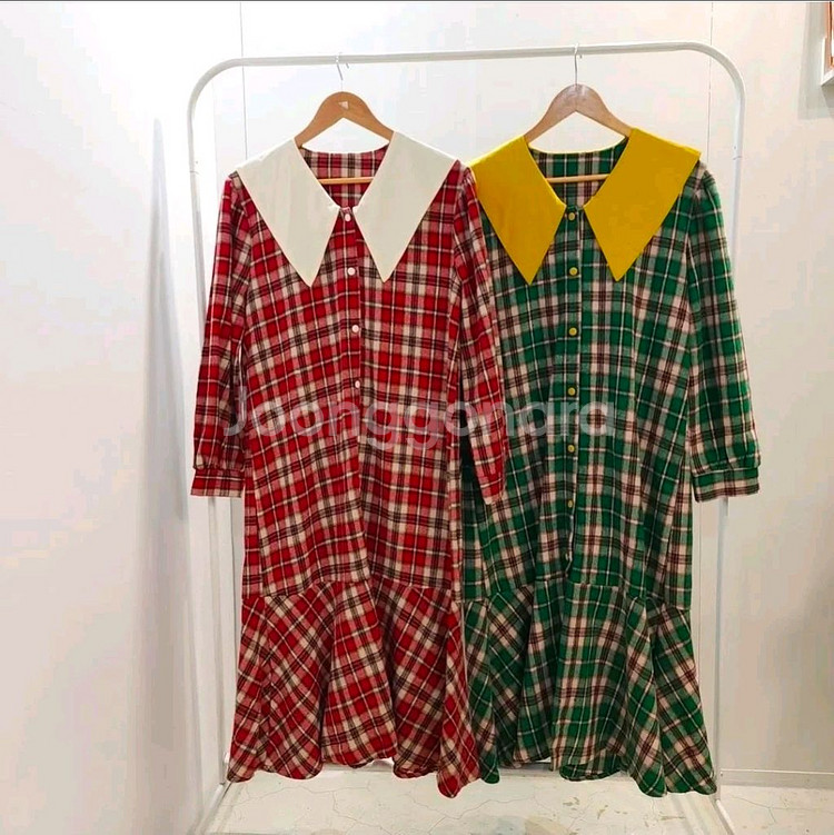 얇은 겉기모 원피스 (레드/그린) 새상품 체크 패턴의 플레어 원피스입니다 레드,그린색상 가슴둘레는 50cm, 총 길이는 120cm 2벌 택포 2만원