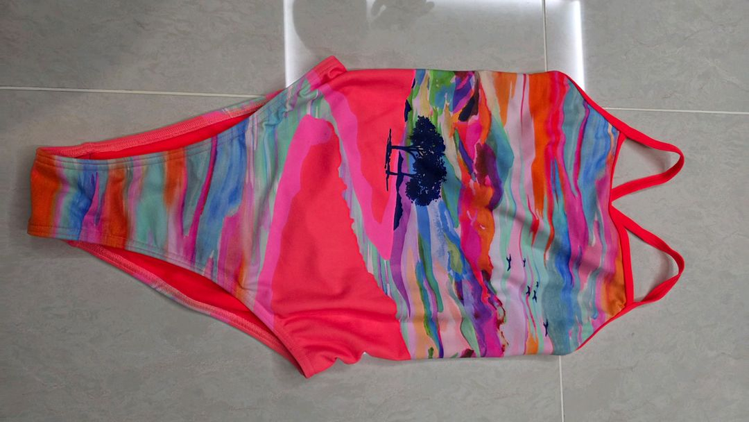 여성용 원피스 수영복이에요. 레드 베이스에 화려한 멀티컬러 그라데이션이 특징적이고, 등 부분이 크로스 스트랩으로 되어있어요. 상태 양호한 중고 제품입니다. -직거래,택배거래 가능 합니다. -편의점 택배 이용하고, 부피와 무게에 따라 반값택배도 가능합니다. -GS편의점 이용합니다. -거래 방법 등 문의환영