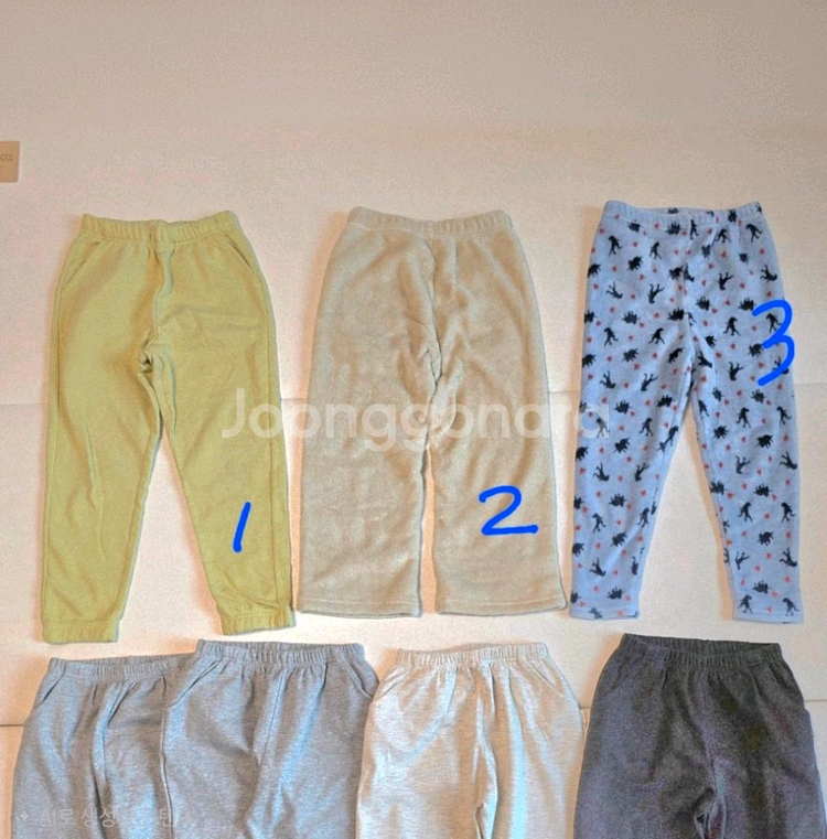 키즈 아동 130 사이즈 팬츠 1-3번 윗줄 3벌 일괄시 9000원 아랫줄: 판매완료 무난한 색상이라 남아 여아 모두 입을 수 있어요. 1) 폴햄키즈 약기모 겨자색 130 : 3000원 2) 래핑차일드 플리스 베이지 와이드 팬츠 130 : 5000원 3) 공룡메카드 수면바지 130 : 3000원 4~7) 조거팬츠 : 판매완료 1번은 두껍지 않고 약기모이고 살짝 보풀있어요. 면 부드러워요. 2,3번은 수면바지 플리스 소재. 3번은 한번 착용. 예민하신 분은 새제품으로 구입해주세요. 5호선 명일역 옆 아파트 직거래 경비실 비대면거래 가능