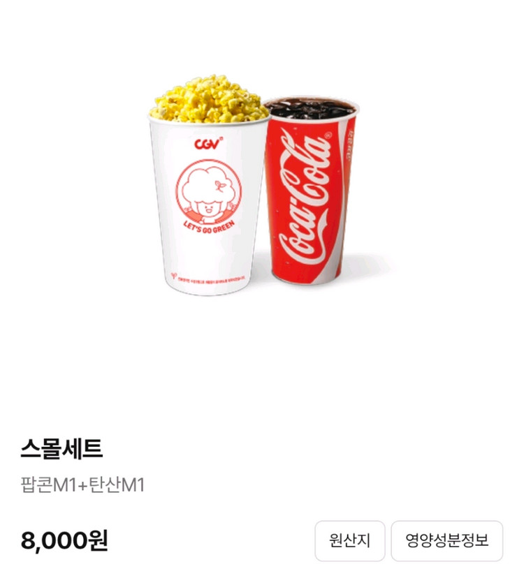 CGV 스몰세트(팝콘 M1 + 탄산M1) 교환권 정가 8000원, 판매가 5000원 맛 변경, 사이즈 변경, 음료 변경 시 추가금액 결제 3월 31일까지 제외지점은 사진을 봐주세요. 여러 개 있습니다.