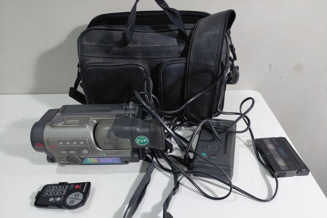 삼성의 빈티지 8mm 캠코더 MyCam 판매합니다. 오래 보관만 하던 제품이라 현재 작동이 되지 않는 고장품입니다. 레트로한 외관 덕분에 카페 인테리어 소품이나 촬영용 소품으로 아주 예뻐요. 동일 모델 사용하시는 분들은 충전기나 리모컨 등 부품용으로 쓰셔도 좋을 것 같습니다. [구성품] 삼성 MyCam 본체 전용 가방 (상태 양호) 전원 어댑터 및 충전기 전용 리모컨 8mm 비디오 테이프 1개
