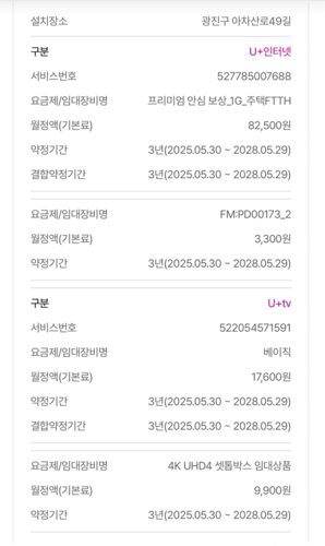 안녕하세요 LGU+ 인터넷+티비 29개월 (2년 5개월) 양도 합니다 인터넷속도는 1기가입니다 한달 월 요금제는 47,630원입니다 모든장비 선불로 택배 깔끔하게 보내드리고 이전신청+설치비+지원금 다 해드리겠습니다 편하게 연락주세요~