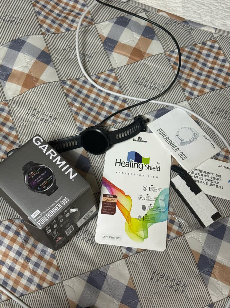 24년 3월 생일선물로 받은 가민 포러너965 입니다 보호필름 새거 하나 있어서 같이드려요