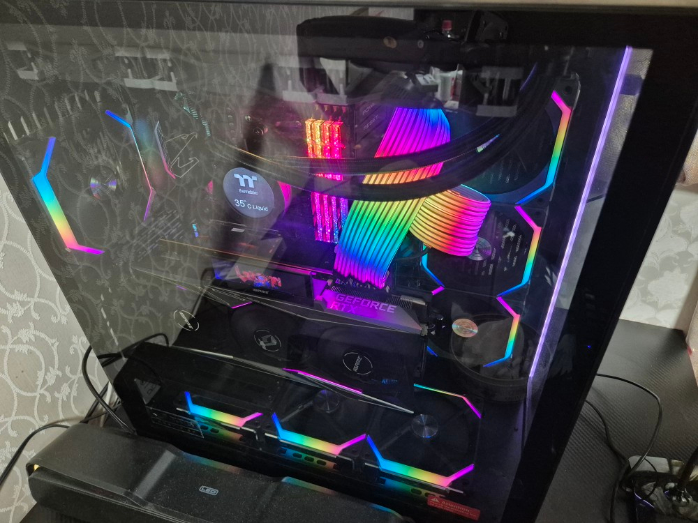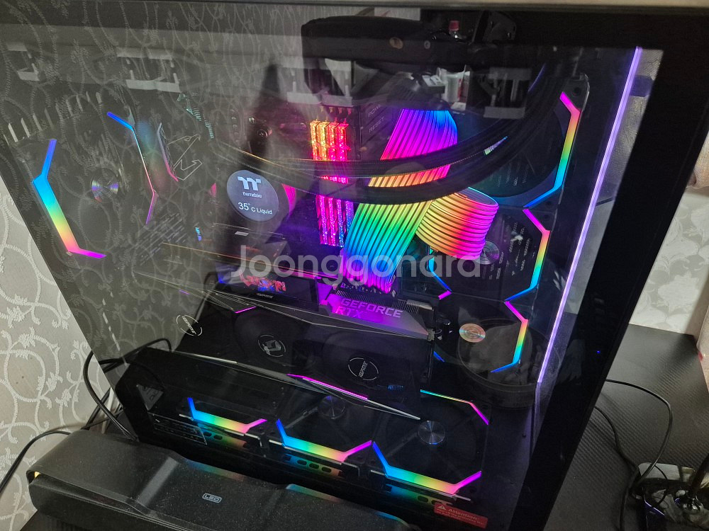 리안리 시스템 반본체 CPU - 라이젠7 5800X3D 보드 - x570 어로스 익스트림 - 기가바이트 램 - G.SKILL DDR4-3200 CL16 TRIDENT Z ROYAL - 32GB (8x4) SSD - 삼성전자 980 M.2 NVMe (500GB) - WD Blue SN570 M.2 NVMe (1TB) 쿨러 - 써멀테이크 TOUGHLIQUID Ultra 360 - 이번달 리퍼후 새제품 교체 케이스 - 리안리 PC-O11D XL ROG (블랙) 파워 - 마이크로닉스 Classic II 750W 80PLUS GOLD 230V EU 풀모듈러 글카 x 리안리 STRIMER PLUS V2 RGB 24핀 케이블 STRIMER PLUS V2 RGB TRIPLE 8핀 케이블 리안리 UNI FAN SL120 V2 (블랙) x 10ea (3개는 수냉쿨러 교체후 팬교체안함) 그외 브래킷,STRIMER L-Connect 3 컨트롤러 ● 사진상 글카있지만 제외입니다 ● rgb 색상 밝기 ,수냉쿨러 lcd 이미지 및 gif 변경가능 모든제품 박스보유 본체 매우 무겁고 박스 부피도 상당해서 직거래만 가능해요