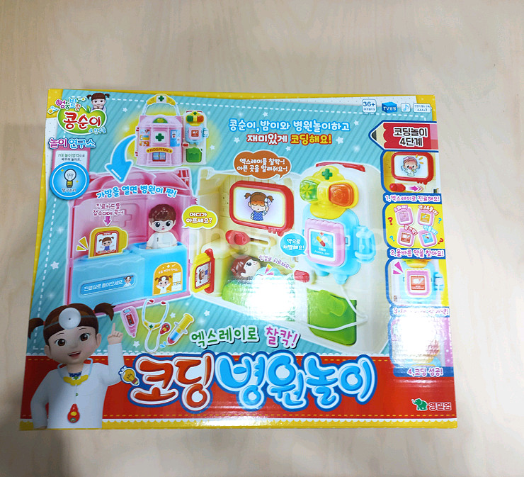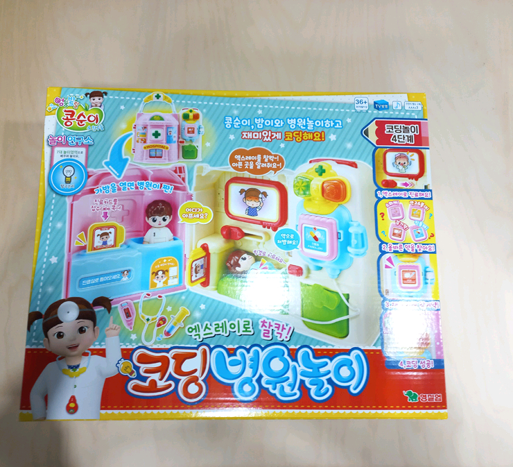 영실업 콩순이 코딩 병원 놀이입니다. 완전 새상품입니다. - 36개월 이상 사용 가능합니다. - 콩순이와 함께 병원 놀이를 즐길 수 있습니다. - 엑스레이 촬영, 진찰, 치료 등 다양한 병원 놀이를 할 수 있습니다. - 병원 본체, 콩순이 피규어, 청진기, 체온계, 엑스레이 필름 2개, 약병 2개, 설명서가 포함되어 있습니다.