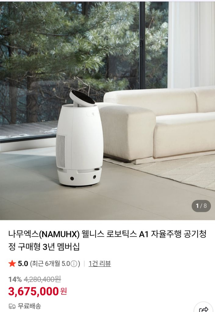 AI 자율주행 로봇 공청기예요. 스마트한 AI를 사용해서 집안 청정이 편리하고, 박스만 없는 새상품입니다 그레이 색상 다른사이트 올려 달라는 분 챗 금지