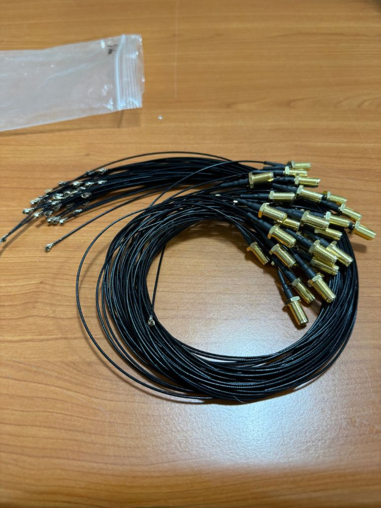 검정색 케이블입니다 금색 커넥터가 달려있습니다 케이블 길이는 사진에 보이는 줄자로 측정 가능합니다 전자 제품에 사용되는 케이블로 보입니다 44개 일괄 입니다