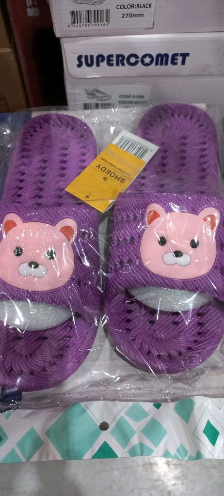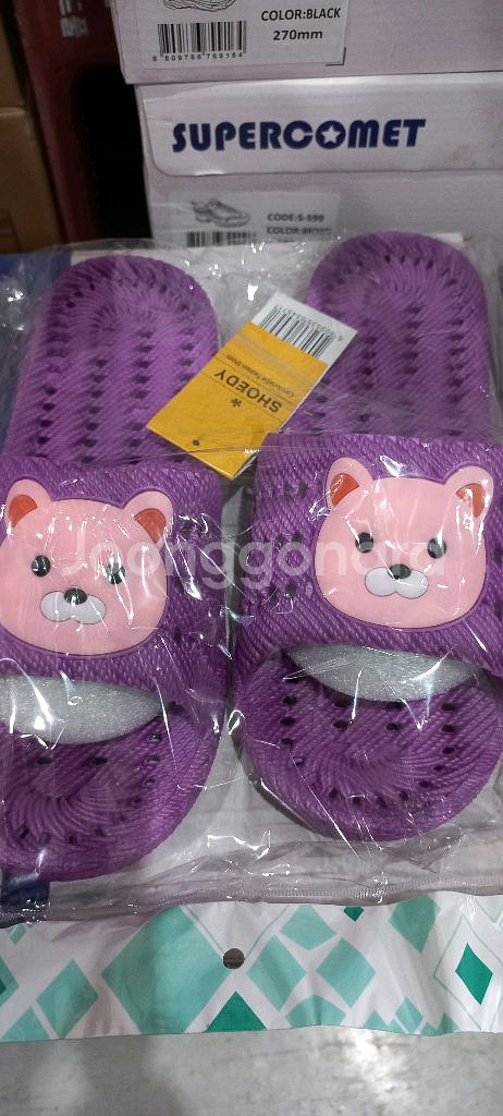 귀여운 핑크 곰돌이가 그려진 퍼플 컬러 슬리퍼예요. 새 제품으로 포장도 그대로 되어있어서 상태 완전 좋습니다. 270mm 사이즈로 발볼이 넓으신 분들께 추천해요! 1켤레 가격입니다 재고 2켤레
