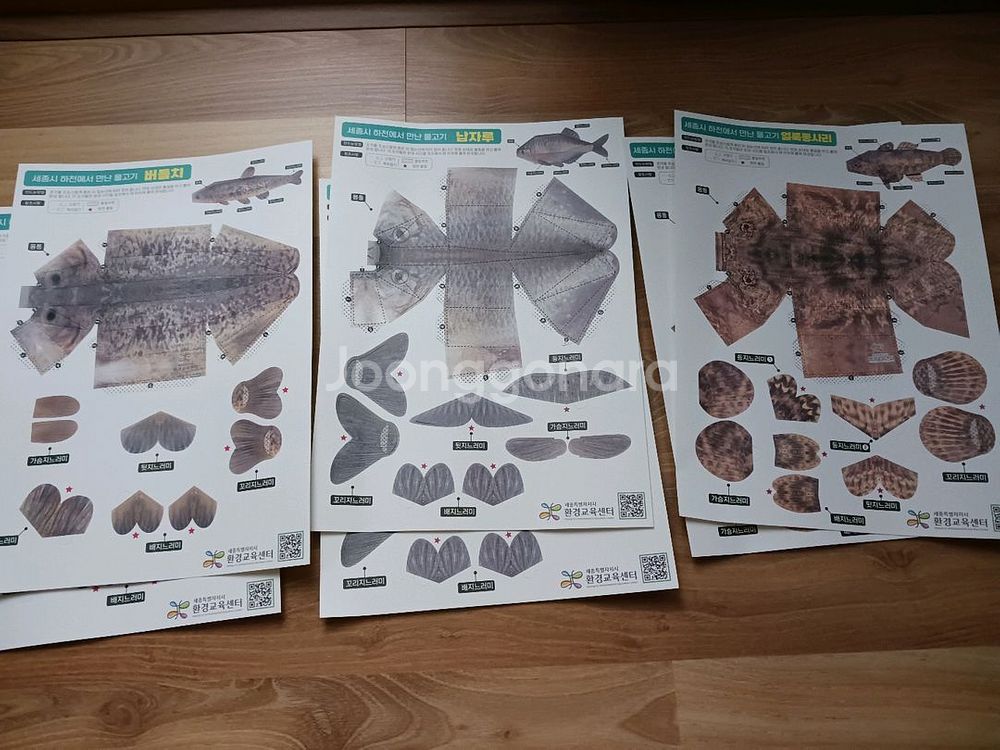 세종시 하천에서 만나는 물고기 종이 공작 세트입니다 - 얼룩동사리 2개 - 버들치 2개 - 납자루 2개
