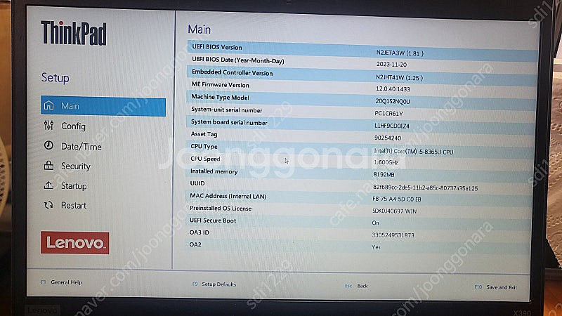 레노버 씽크패드 X390 i5-8365U/8G/SSD256GB CPU I5-8365U RAM 8GB SSD 256GB WINDOWS 11 PRO 디스플레이 13인지 해상도 1366*768 원도즈 11 정품 충전기도 함께 드립니다