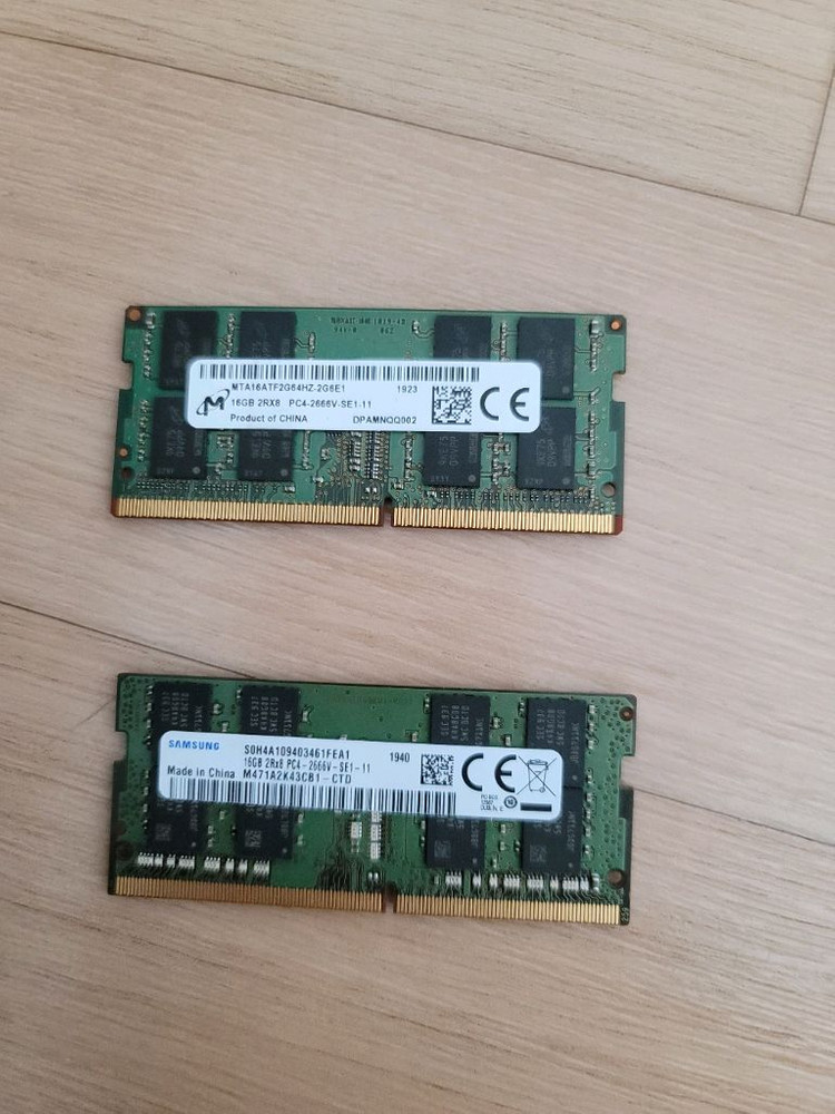 DDR4 16GB 메모리 2개입니다. 정상 작동하는 중고 제품으로 컴퓨터 업그레이드용으로 좋아요.