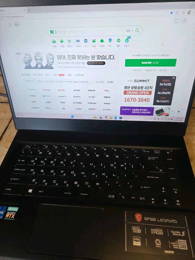 MSI GP66 Leopard 11UG 게이밍 노트북 4년정도 사용한것 같습니다. 한 자리에서만 사용해서 외관 흠 없습니다 중고로 판매 할려고보니 배터리가 조금 약해진것 같아서 공식서비스센터 보내놓은 상태입니다. 점검, 배터리 교체, 써멀구리스 재도포, 청소 작업 맡겨 놓은 상태입니다. 비용은 30만 9천원 결제했습니다 제품 도착하면 바로 판매합니다 대구 방촌동입니다
