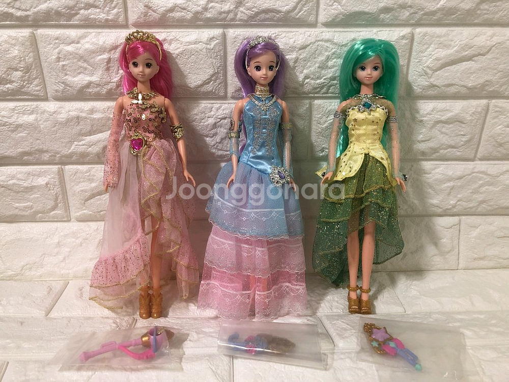 소품 모두있고 머리 빗겨지고 상태 양호해요 신디는 원래 귀걸이 머리띠 없어요 하프 구성 모두있고 상태 양호해요
