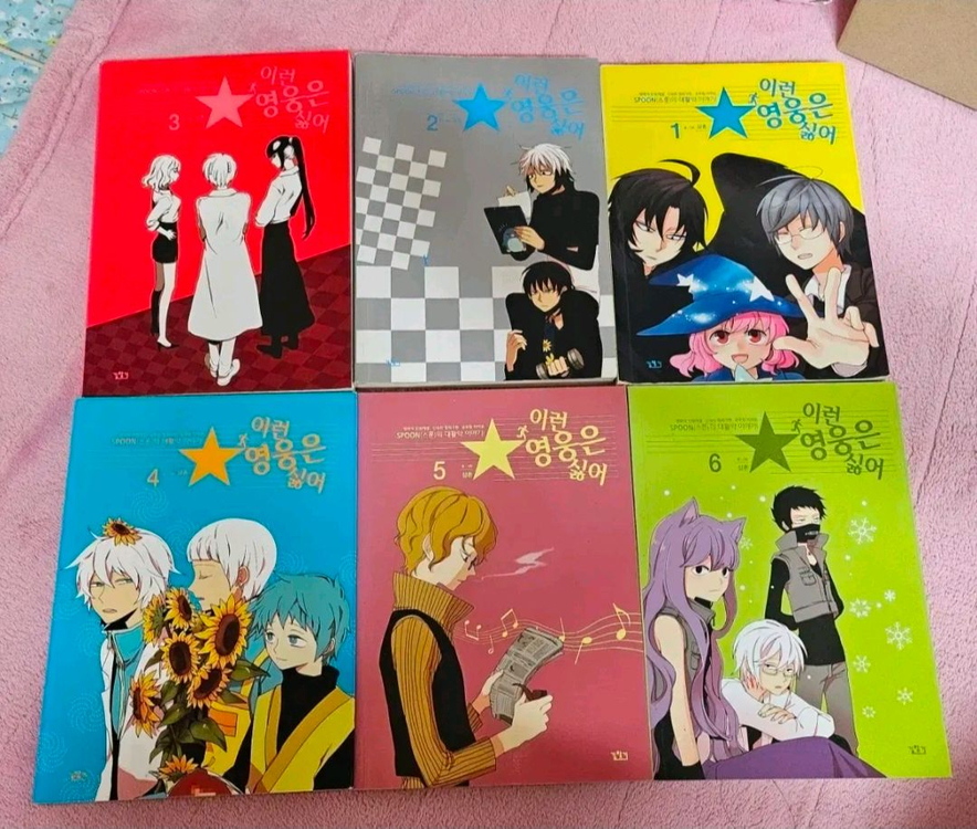 이영싫(이런영웅은싫어) 1~6권 완전세트예요. 책 상태도 깨끗하고 전권 모두 있어서 한번에 다 읽으실 수 있어요. 인기작이라 빠른 거래 원해요! 일괄 가격으로 올립니다
