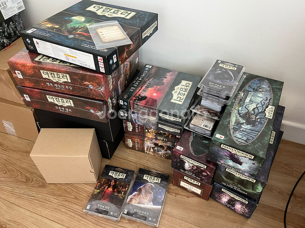 아컴호러 카드게임 일괄 판매합니다. 1. 일괄 160만원에 판매 희망하며, 경기도 광명시 철산동 직거래 가능합니다. ㄴ 주말에 방문하여 카드 확인 후 수령해가셔도 됩니다. ㄴ 택배거래 희망 시, 택배비 3만원 추가 및 카드 분실 위험등의 이유로 환불 불가합니다. 2. 구성: 정식발매 상품이며 지구의 끝자락 사이클 / 시공을 초월한 음모 미니 확장을 제외한 모든 확장 구성입니다. ▶개봉 및 플레이한 제품 / 밀봉 신품이 섞여있어 리스트 확인 부탁드립니다. ▶플레이한 카드만 프로텍터 처리했으며, 카드 구성 확인하며 일부 프로텍터 제거했습니다. → 프로텍터 처리가 되어 있지 않다고 보시면 됩니다. ▶박스가 없는 제품, 룰북 보관하고 있습니다. 각 시나리오는 '돌아온' 확장 박스에 보관했습니다. ▶개봉된 조사자 / 직업 카드는 직업별로 덱박스에 따로 보관하고 있습니다. (사진 참고) 코어 세트, 구판 2 박스1개 개봉 5회플 돌아온 광신도의 밤 1 O 개봉노플 던위치의 유산 사이클 (구판) 1 X 개봉 2회플 돌아온 던위치의 유산 1 O 개봉노플 카르코사로 가는길 사이클 (구판) 1 X 개봉 2회플 돌아온 카르코사로 가는길 1 O 개봉노플 잊힌 시대 사이클 (구판) 1 X 개봉노플 돌아온 잊힌 시대 1 O 개봉노플 끝맺지 못한 의식 사이클 1 X 개봉노플 돌아온 끝맺지 못한 의식 1 O 개봉노플 꿈을 먹는 자 사이클 1 O 밀봉 인스머스에드리운음모 사이클 1 O 밀봉 진홍색 열쇠 (시나리오 + 조사자) 1 O 밀봉 햄록 베일의축일 (시나리오 + 조사자) 1 O 밀봉 아컴호러 카드 조사자팩 5종 (스타터 덱 5종, 한글판) 1 X 개봉노플 멍컴호러 1 X 개봉 1회플 엑셀시어 호텔 살인사건 1 X 개봉노플 광기의 미궁 1 X 개봉노플 한탕과허탕 1 O 밀봉 심연의수호자 1 O 밀봉