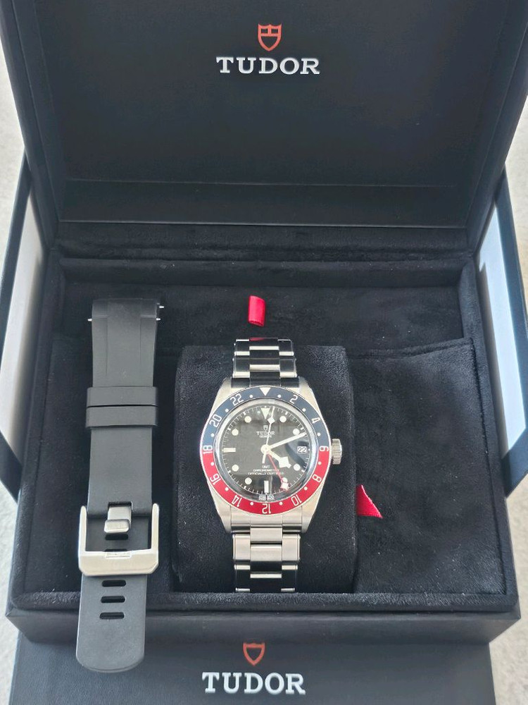 튜더 블랙베이 GMT 펩시 41mm 제품입니다. 모델번호: 79830RB 스탬핑: 2025년1월(보증기간5년) 리테일가: 7,060,000원 구성품: 정품시계, 정품박스, 보증서 포함 풀세트 입니다. 추가로 크래프터블루 러버밴드도 있습니다. 시계상태: A급 외관은 미세한 기스외에는 찍힘없이 아주 깨끗하며 상태 좋습니다. 교환X 직거래는 대구 입니다.