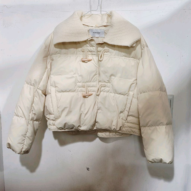 나이스클랍 아이보리 숏패딩입니다 몽글몽글한 착용감이 가볍고 편해요 토글 버튼으로 잠그는 디자인이 포인트입니다 사이즈는 Free 이고요 총길이/ 55 ㆍ 가슴단면/58 입니다 넥 카라는 착탈가능 합니다 상태는 착용횟수 많지않은 아주좋은 컨디션 입니다