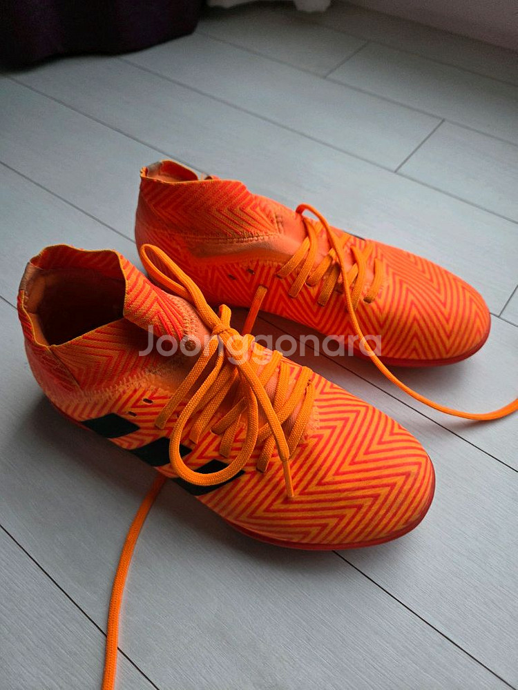 개인정보(거래정보)를 주고받는 행위는 사기에 노출될 수 있으므로 즉시 중고나라로 신고해 주세요사이즈는 210이고, 아디다스 삼선이 포인트인 축구화입니다. 전체적인 상태는 양호합니다만 신었던거라 사용감이 있습니다