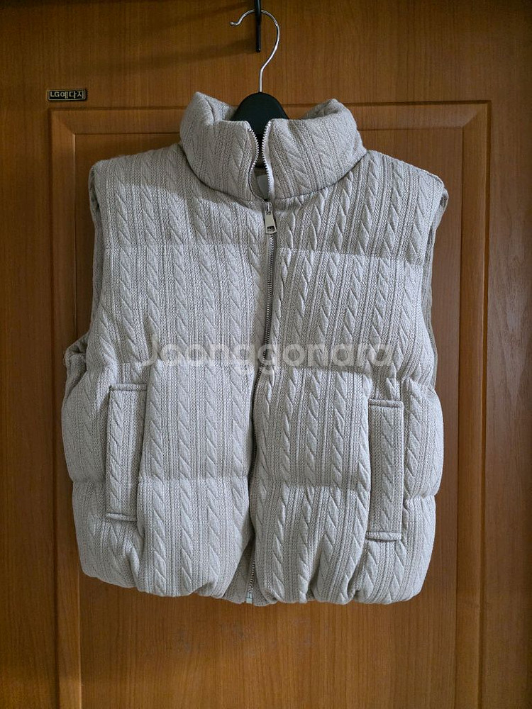 가단 54cm 총장 55cm 프리사이즈 통통 66까지가 예쁠것 같아요.. 사진보다 아주 조금 더 어두운 색.. 헤링본 스타일 패딩조끼라고 하던데 무게감도 있고 톡톡하고 따뜻해요.. 밑단은 밴딩처리되어 아방가르드해서 입으시면 핏이 예뻐요^^ 청바지나 하이웨스트바지나 스커트에 다 잘 어울려요..