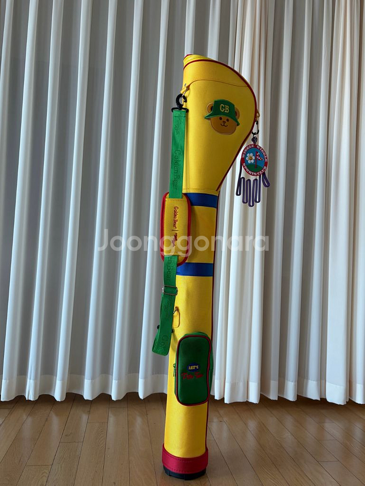 골든베어와 위글위글 콜라보 하프백입니다! 톡톡 튀는 노란색 컬러와 귀여운 디자인이 특징이에요 필드에서 시선집중! 상태는 사진과 같이 좋습니다! 구매후 가지고나가 사진한번찍고 보관만했어요! 골프를 전혀 좋아하지않아서 ㅋㅋ 사용할기회가 없어 판매하게되었습니다! 상태 전부 너무너무 좋습니다. 전부다 구매하실경우 일괄 15만원에 드릴게요!