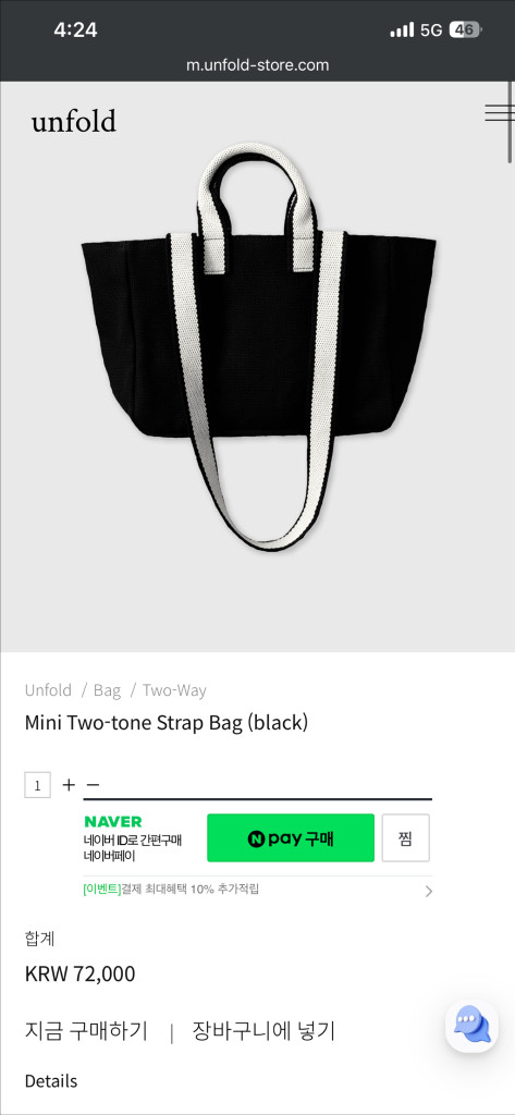 [미착용상품]언폴드 미니 투톤 스트랩 백 블랙