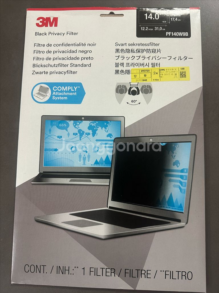 노트북용 블랙 프리바시 필터예요. 14.0인치 모델에 맞는 새 제품입니다. 노트북 화면 보호와 개인 정보 안전을 위한 필수 아이템이에요! 미개봉 신품입니다