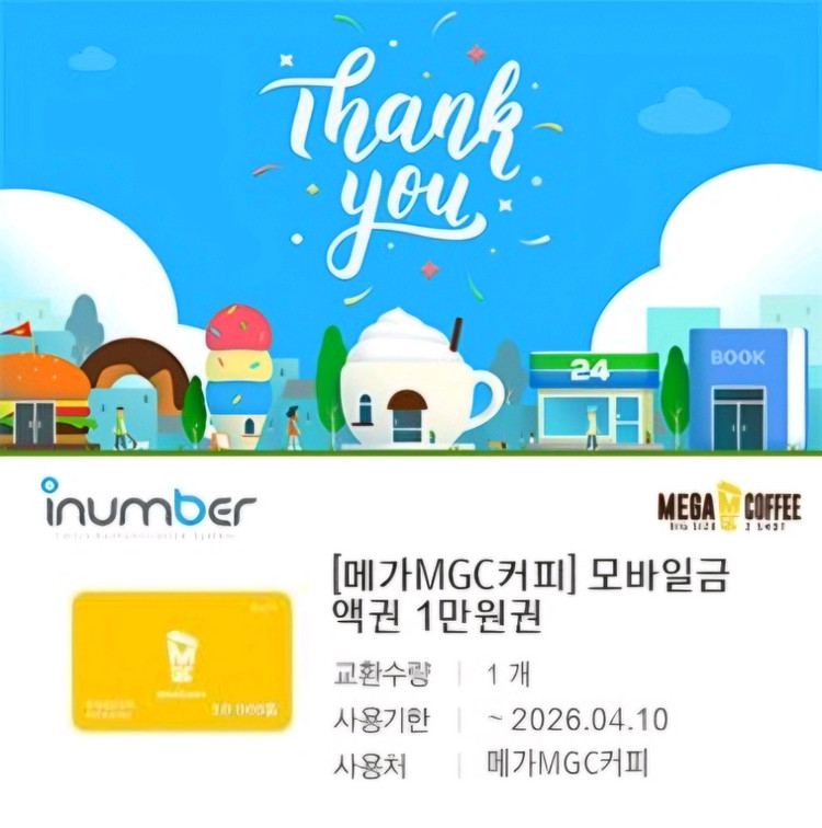 메가커피 모바일 금액권(1만원권)(앱 등록 가능)