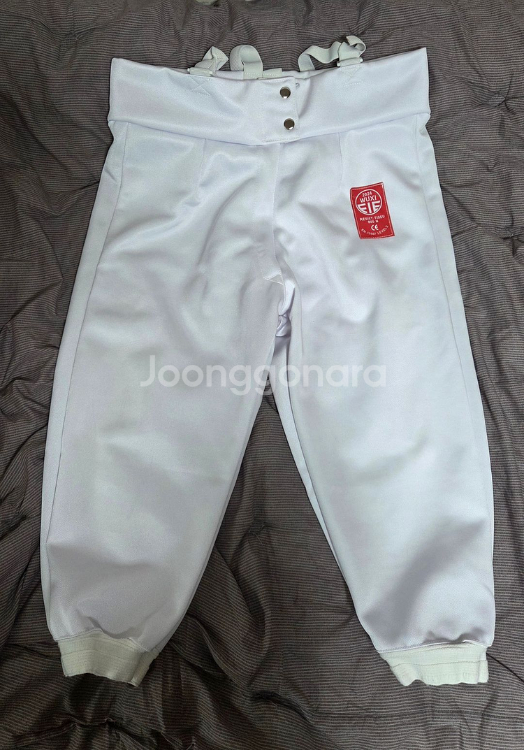 -VS펜싱 대회용 800N 하의 -사이즈 54(성인남성 기준 키175~182cm면 적합함) 1년전에 올뎃펜싱사에서 구매해서 몇번 입다가 사이즈가 안맞아서 여분용으로 갖고있던 도복바지를 판매합니다. 어디 구멍나거나 헐거워진 부분 없이 튼튼합니다 특이사항으로는 벨크로 앞단추가 떨어져서 약간의 수선을 통해 기존 제품보다 더 견고하고 경기 도중에 열리지 않게끔 바지후크를 부착했습니다. 동호인 대회 나갈 때 딱히 브랜드를 신경쓰지 않으시는 편이라면 이것도 나쁘지 않은 선택이라고 생각합니다.
