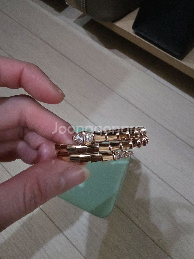 개인정보(거래정보)를 주고받는 행위는 사기에 노출될 수 있으므로 즉시 중고나라로 신고해 주세요로즈골드 18k 5.9돈정도이며 한번도 안껴서 새거같에요. 랩다이아 박혀있고 실제 엄청반짝거리고 이뻐요. 직거래는 일산,서울쪽입니다. 여성 15센치 팔목둘레에요.
