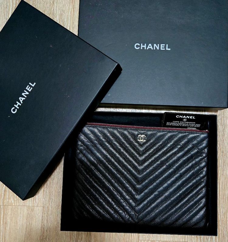 샤넬 캐비어 쉐브론 미듐 클러치 블랙&은장 전체적인 컨디션 좋음 바닥이나 라이닝부분 마모나 까짐 안보임 더스트 게런티카드 케이스에 보관중 정품이며 아닐시 2배보상함 반품x 직거래x쿨거래원함