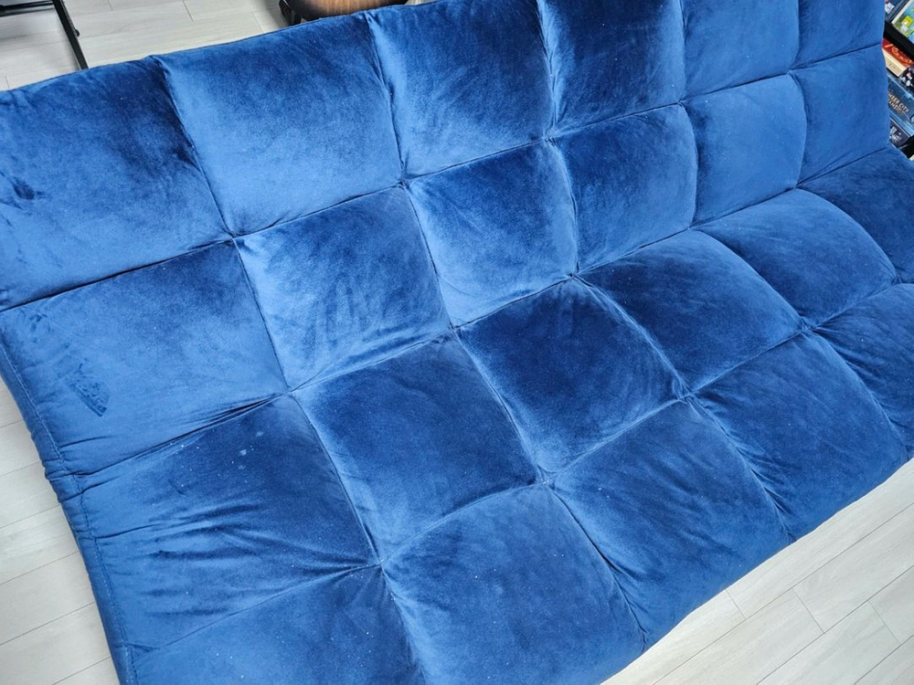 3인 소파 및 카우치, 침대로 사용 가능합니다 약간 벨벳 느낌의 패브릭 소재이며 커버 분리 세척 가능합니다 등받이 각도 조절도 2단으로 됩니다 직접 가지러 오셔야하며 엘베 있습니다 약 185x110 정도 사이즈입니다