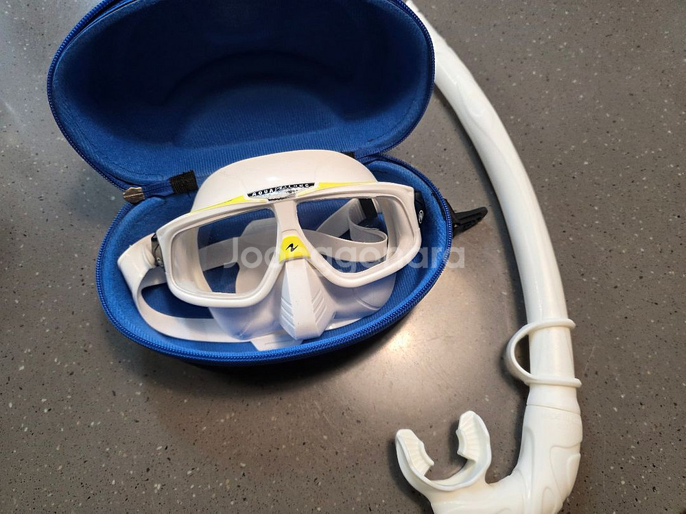 아쿠아렁 스페라 마스크와 더블케이 숨비 스노클입니다. 아쿠아렁은 로고벗겨짐이 좀 있고 렌즈 기스가 있습니다. 생활기스라 물 속에선 하나도 거슬리지 않았으나 예민하신분은 패스해주세요. 스노클은 깨끗합니다. 스노클 정가만해도 3만원이고 아쿠아렁 마스크 정가는 7만원이 넘습니다.