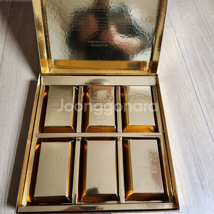 스팸 골드바 카카오 에디션 선물세트입니다 - 200g 6개입 구성입니다. 특별한 날, 소중한 분께 고급스러운 선물로 마음을 전해보세요. - 소비기한: 2028년 8월 1일