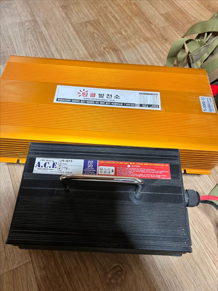 팅클발전소 인버터 12v 3000w, 에이스테크 배터리충전기 JR-Q15. 노래방 기계까지 싹 다 31만원에 판매합니다. 사용감은 있지만 정상 작동하는 상태예요. 궁금하신점 문의해주세요~ 제 캠핑카 전기를 업그레이드 하려고 판매합니다. 급처분하는거라 가격내리고 진짜 싸게 팔아요!