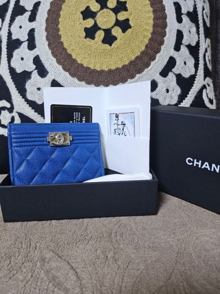 2021년도 시즌컬러 블루 은장 보이카드지갑이에요 컬러가 넘 오묘하고 이뻐요 케비어라 소재라 튼튼하구요 구매후 보관만한 새상품이나 다름없어요 박스 더스트 개런티카드 풀구성 가품외에는 환불 불가요♡