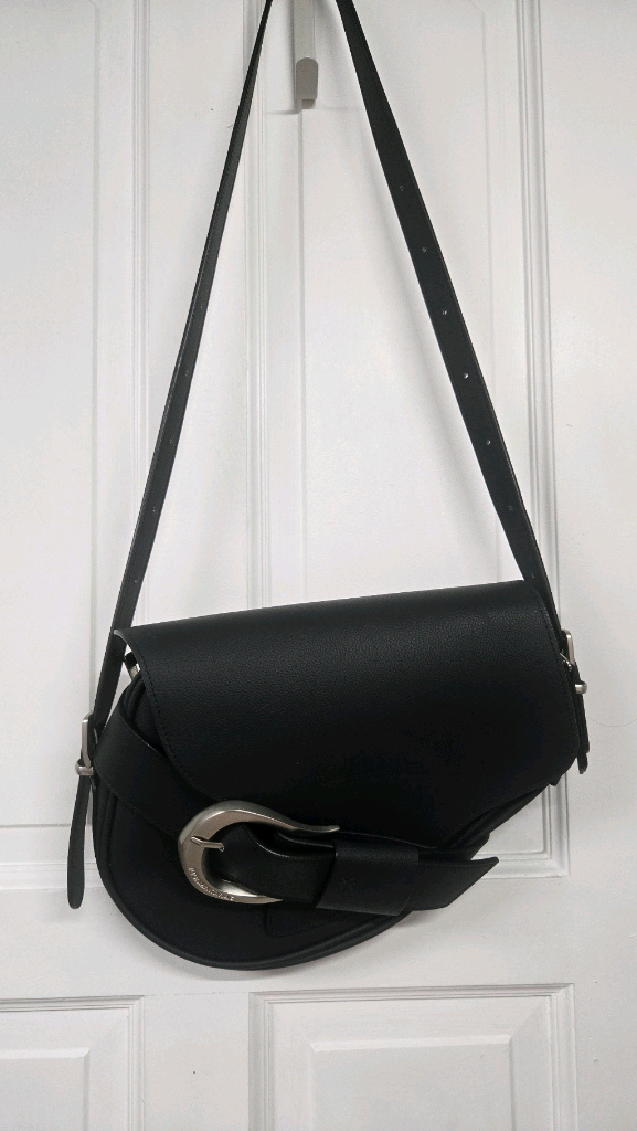 반달 쉐입에 사선으로 감기는 벨트 디테일. 심플한 블랙 바디 위에 은은하게 빛나는 H 버클이 포인트인 가방이에요. 군더더기 없이 깔끔한 디자인인데 벨트 라인이 한 번 감겨 있어서 기본 백이 아니라는 느낌. 화이트 티 + 슬랙스에 툭 걸쳐도 예쁘고, 자켓이나 트렌치 안에 매면 쿨한 시티 무드 완성돼요. ✔ 컬러 Black ✔ 소재 Polyurethane 100% (가볍게 들기 좋은 소재) ✔ 사이즈 가로 28cm / 세로 19cm / 폭 5cm 숄더 & 크로스 가능 상태:전체적으로 아주 양호한편 👌입금순!!! 🤩 우체국 택포!! 😎 교환/반품불가 !! 🧡❤️ 제 판매상품중 2개이상 구매하시는분 또는 재구매하시는분께는 에눌해드려요! 편안~~하게 문의 주시되 ,서로 기분 좋은 거래가 될 수 있도록 예의를 지켜주세요 :)