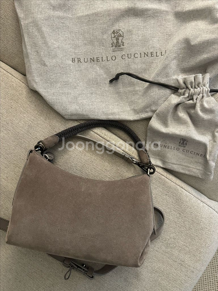 파워정품이고 긴끈도 있습니다! 그래서 크로스백으로도 가능하세요 에토프? 색상이고 전체 스웨이드 소재에 핸들 쿠치넬리 비즈로 되있는데 엄청 고급스럽고 이뻐요 ㅜㅜ 애정하는 가방이었는데 한 5번 들었고 다른 가방 사려고 판매해요 진짜 비싸게 줬고 싸게 내놓는거에요.. ㅜㅜ 핸들부분이 은은하게 반짝반짝해서 너무이쁘고 그립감도 좋아요 들어갈거 다 들어가요! 코디하기도 쉽고 고급스러워요~~실제로 더 이쁩니다