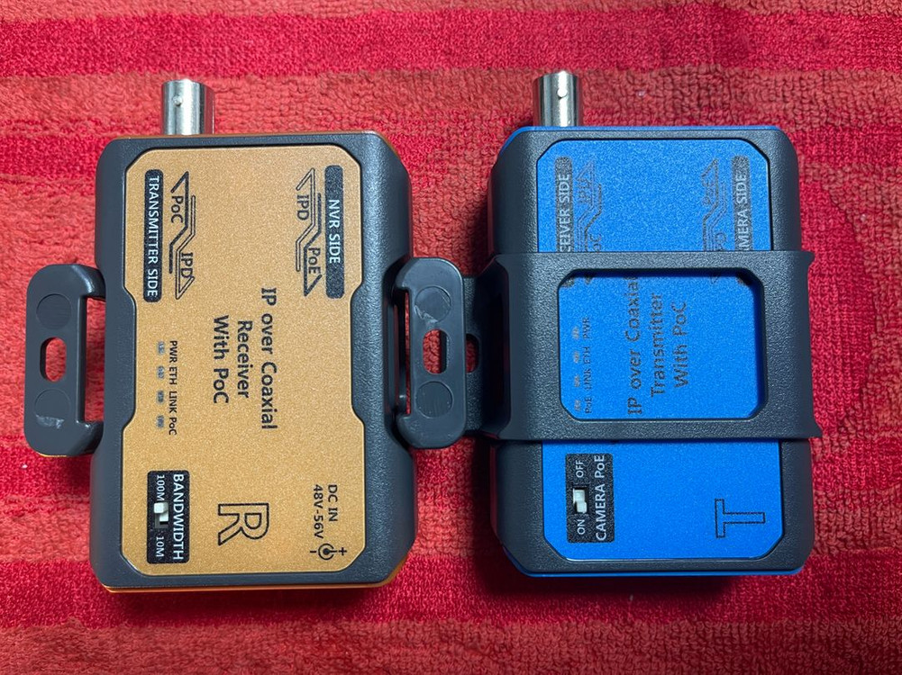아이피텍 SC-IPT07P 송신기, SC-IPR07P 수신기 세트입니다 IP 카메라 전원 공급 (PoE type b/최대 30W) 가능하고, 동축 케이블로 전원 전송이 가능합니다 구성품은 사진에 보이는 것과 같이 SC-IPT07P, SC-IPR07P, 브라켓, 설명서 포함입니다 전송 속도는 10Mbps/100Mbps를 지원합니다. 어뎁터는 미포함 이며, 새제품 입니다.