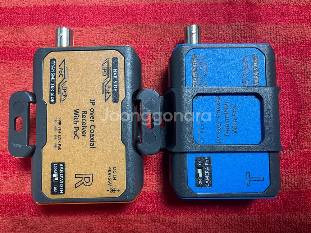 아이피텍 SC-IPT07P 송신기, SC-IPR07P 수신기 세트입니다 IP 카메라 전원 공급 (PoE type b/최대 30W) 가능하고, 동축 케이블로 전원 전송이 가능합니다 구성품은 사진에 보이는 것과 같이 SC-IPT07P, SC-IPR07P, 브라켓, 설명서 포함입니다 전송 속도는 10Mbps/100Mbps를 지원합니다. 어뎁터는 미포함 이며, 새제품 입니다.