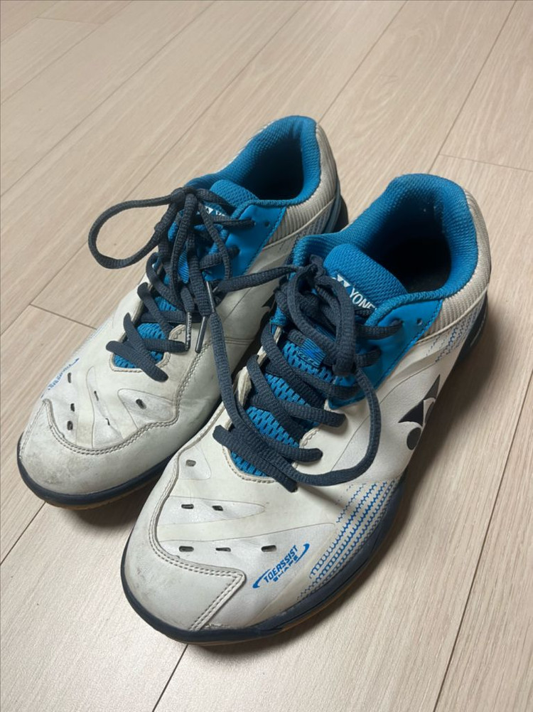 요넥스 배드민턴화입니다 전체적으로 생활 사용감은 있지만, POWER CUSHION 기능이 있어 편안하게 신을 수 있습니다 바닥은 NON MARKING 처리되어 있으며 사진에서 보시는바와 같이 닳지 않은 새것 상태입니다 특별히 낡거나 떨어지거나 이염있거나 구멍나거나 한곳 전혀 없습니다 택배시 착불 반값택배 가능 택비 선불