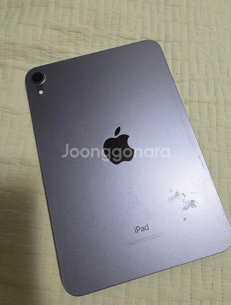 아이패드 미니 6세대 퍼플 256GB WIFI 케이스 함께 드립니다 뒷면 얼룩은 리무버블 스티커 자국인데 지워서 드립니다 사실상 이북리더기 내지는 미니 모니터 같은 용도로 사용했습니다. 들고나간일도 별로 없고 주로 집에서 사용했습니다