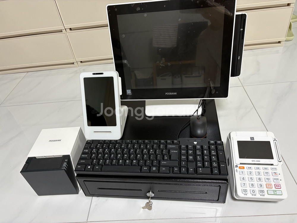 매장에서 1년정도 쓰던 포스기인데 전체로 구매를 해서 쓰다가 매장 내놓아서 판매합니다. 할부나 이런건 없고 등록만 하시고 사용하시면 됩니다. 구성은 사진에서 보시는 것 처럼 모두 포함이고 포스기 모니터, 금전등록기 카드단말기겸 빌지기계 1대 주방에서 빌지 받는 기계 1대 토스페이 카드단말기, 키보드,마우스 다 드리는 구성이라 식당이나 매장에서 그대로 등록만 하시고 쓰시면 됩니다. 사진에서 보시는 것처럼 모니터도 화면에 스티커를 안뜯고 사용을 해서 전체적으로 엄청 깨끗하고 양호합니다. 직거래도 가능하고 택배도 가능합니다. 문의는 010-3013-2766 으로 주시고 부재시 문자 꼭 남겨주세요:)