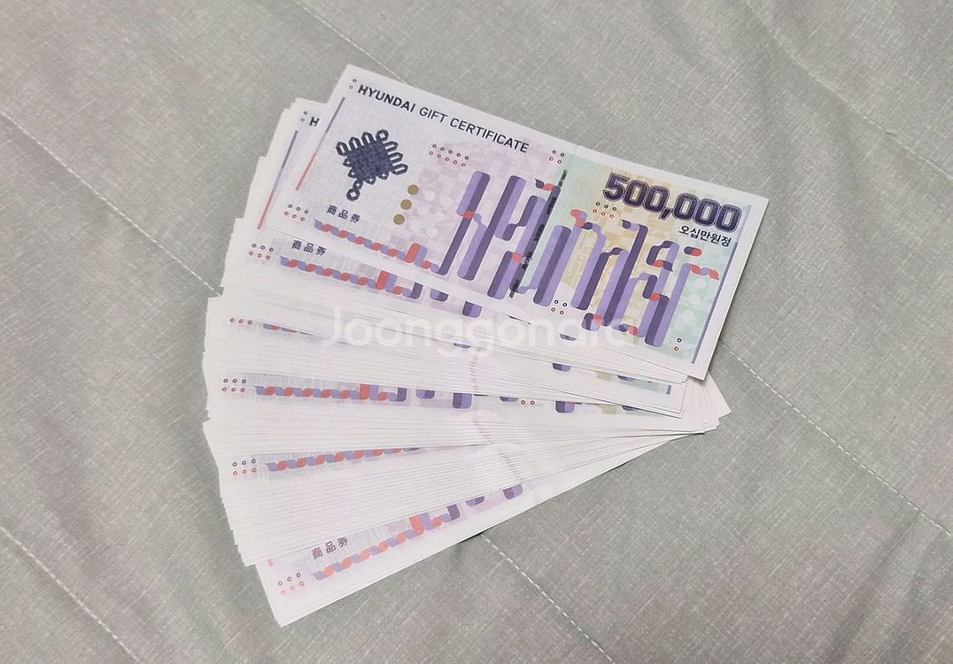50만원권 46장이고 2300만원치입니다. 전액구매도 가능합니다. (10만원 기준 96500원) * 장소: 일산 킨텍스 부근 * 매너거래 하지 않는분, 찔러만 보고 답장 없는 분, 거래중 잠수 타시는 분과는 추후 거래 하지 않겠습니다. * 네고 없는 고정금액 입니다. 현장 네고 금지 * 입금확인 후 물건을 넘겨드리는 것이 기본 원칙입니다. 입금 없이 상품권을 먼저 달라고 하시는 분이 있었는데 그런 분과는 거래하지 않습니다.