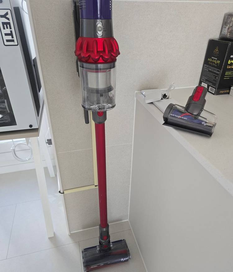 25년 5월에 이사하면서 집들이 선물로 받은 다이슨 v10 앱솔루트 무선청소기 판매해요! 충전거치대와 다양한 브러시 및 사진과 같이 벽걸이 거치대 포함되어 있고, 상태 괜찮으며, 깨끗하게 관리해서 상태 양호합니다. 천안 직거래 원하며, 택배거래는 직거래 불발 시 판매하도록 하겠습니다. 추가 9000원