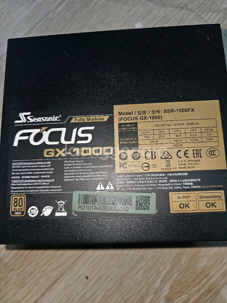 시소닉 FOCUS GX-1000 풀모듈러 파워입니다 - 풀 모듈러 디자인으로 깔끔한 선정리가 가능합니다 - 80 PLUS Gold 인증을 받아 효율적인 전력 사용이 가능합니다 - 고품질 부품을 사용하여 안정적인 전력 공급을 보장합니다 - 과전압, 과전류, 단락 보호 등 다양한 보호 회로가 내장되어 있습니다 - 10년 보증으로 안심하고 사용할 수 있습니다 케이블 새거입니다. 보증기간 31년 1월까지 시소닉센터가서 정상판정 받았습니다. 용산 하이브 본사근처 오시면 작동확인후 거래 가능합니다. 혹은 제가 직접배달하고 댁에서 작동확인가능합니다. 배달비 용산구 1만.용산에 접한구는 2만 안전거래택배가능 퀵거래 가능 안팔리면 가격낮출생각이니 네고문의말아주세요
