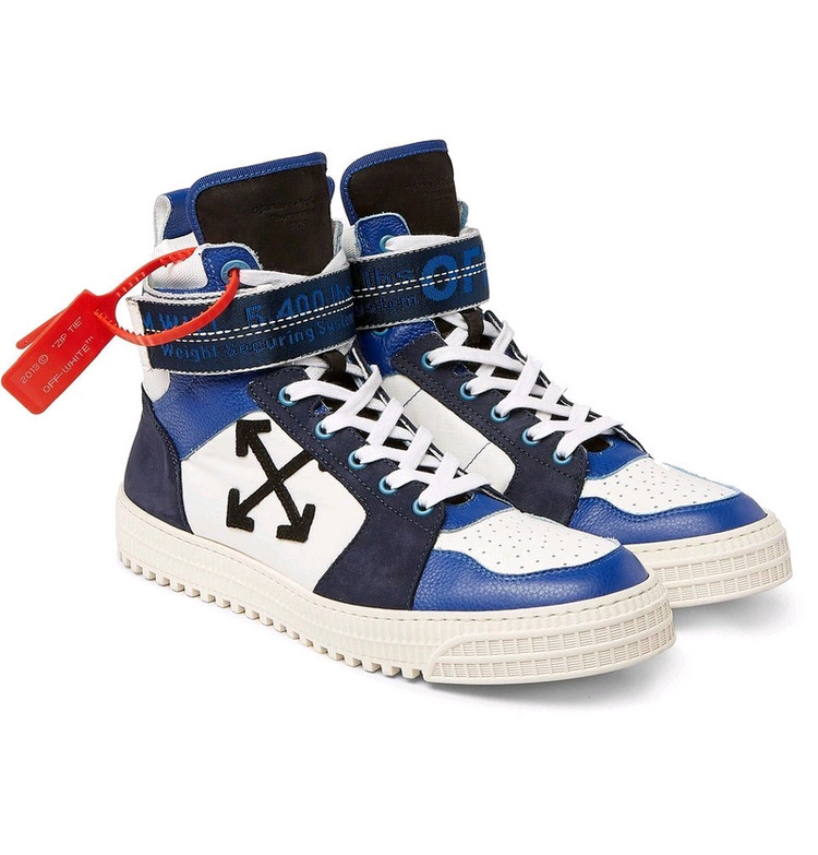 오프화이트(Off-White) 인더스트리얼 패널 립스탑 스웨이드 가죽 하이탑 스니커즈 블루 42