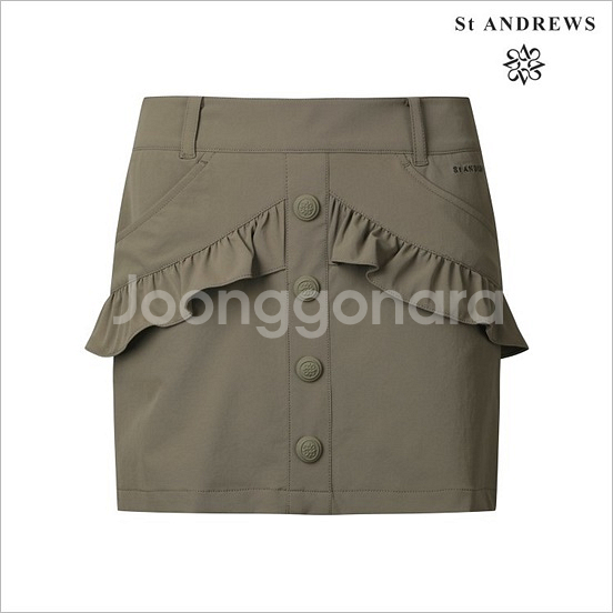 세인트앤드류스 프릴 디테일 H라인 큐롯 스커트. 사이즈 M(28). 허리단면 37.5, 기장 36. 속바지 내장. 신축성 좋고 예뻐요. 착용감 없고 상태 깨끗합니다.
