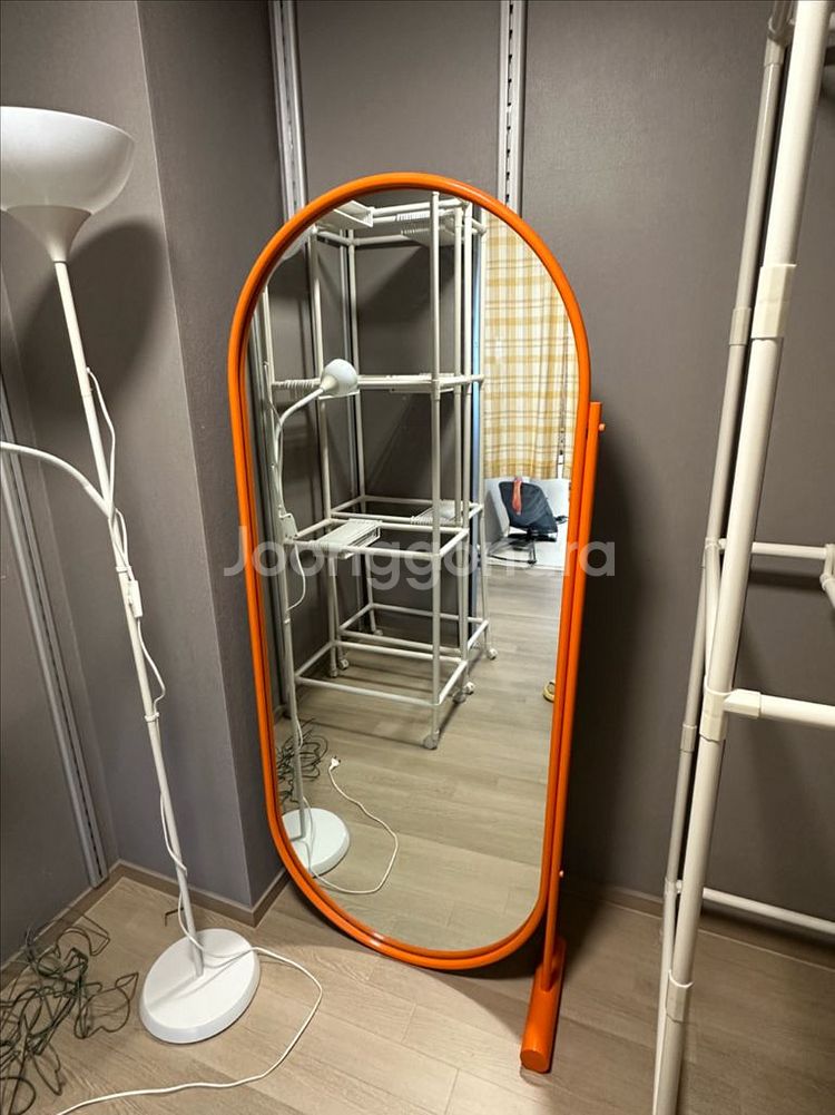 깔끔한 오렌지 프레임의 그레이맨션 대형 전신거울이에요. 거실이나 침실 어디든 잘 어울리고, 상태도 양호합니다. 실용적이면서 인테리어 효과도 좋아요!